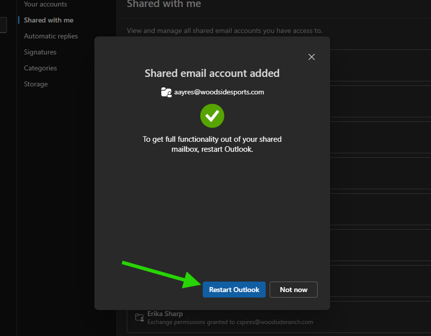 - Click "Restart Outlook" or completely close and reopen normally